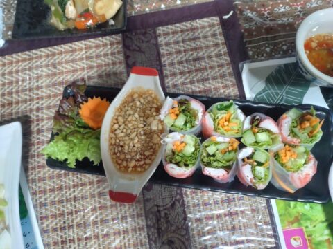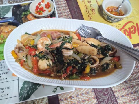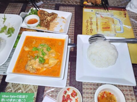 写真に載せきらないほど、妻に叱られるほどオーダーしました。えびチャーハンやマッサマンカレーや生春巻き、ヤムウンセン、カオマンガイ、鶏肉のニンニク揚げなど、覚えきらないほど…。