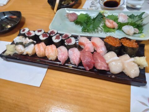 そして雪の上越に戻り、仲町の寿司処なかにさんで楽しく会食。あん肝、タラの白子、いくらのお寿司などの美味しい痛風セットをいただきました。なかにさん、ビーフシチューもあり全部美味しかった~。